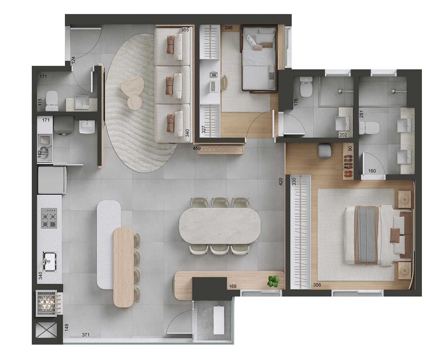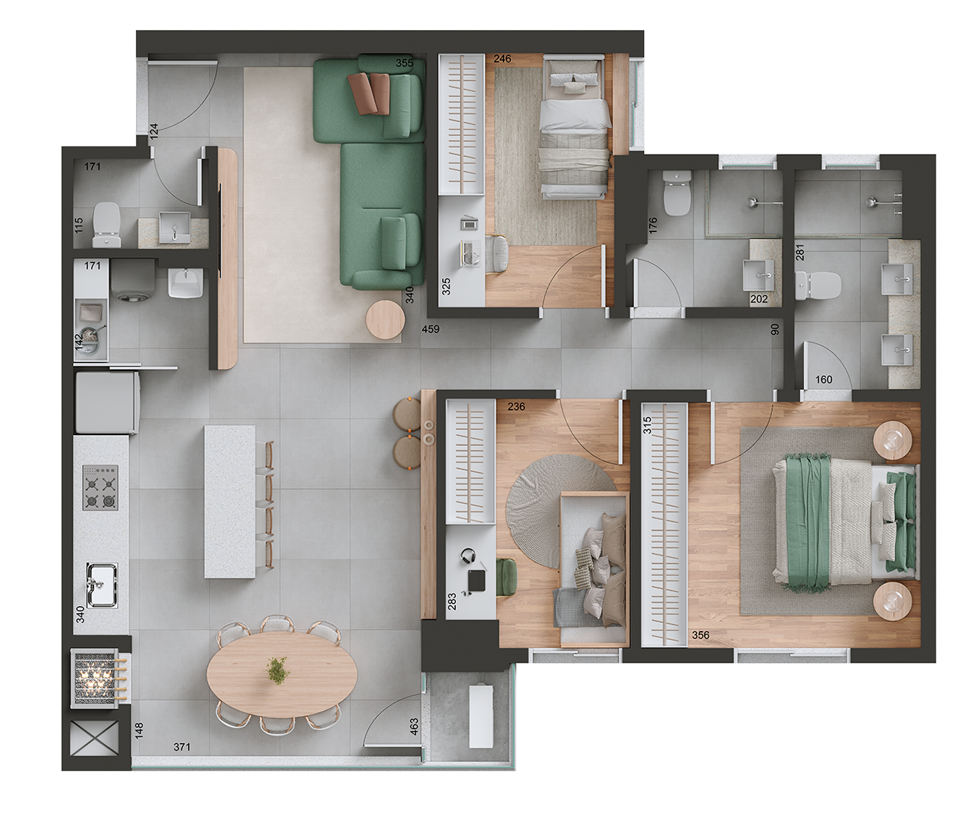 Área privativa: 91 m²